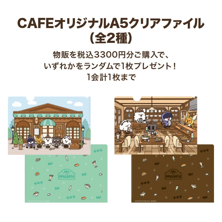 1回のお会計のご購入金額3,300円以上(税込)で「CAFEオリジナルA5クリアファイル(全2種)」をランダムで1枚プレゼントいたします。