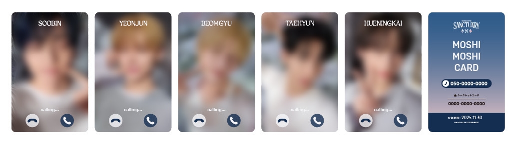 ※MOSHI MOSHI CARDは、電話がかかってくるカード「37card」のシステムを取り入れたカードです。カードの裏面に書かれた電話番号に電話をかけ、シークレットコードを入力すると、メンバーより折り返し電話がかかってきて、特別なボイスをご視聴いただけます。さらに、電話帳にメンバーの名前を登録すれば、メンバーから電話がかかってきたような擬似体験ができます。